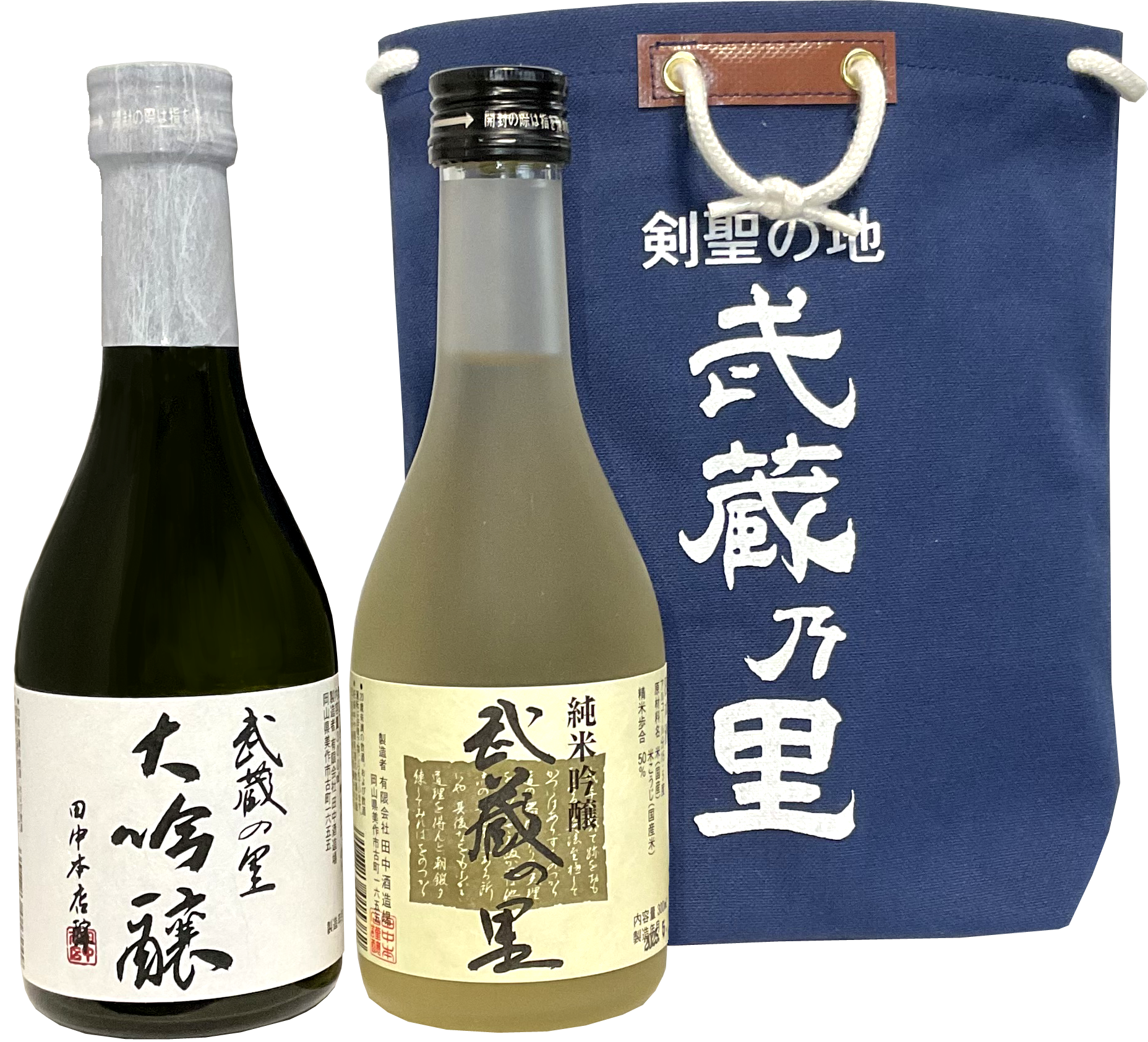 武蔵の里大吟醸、純米吟醸の300mlの甚吉袋セット。